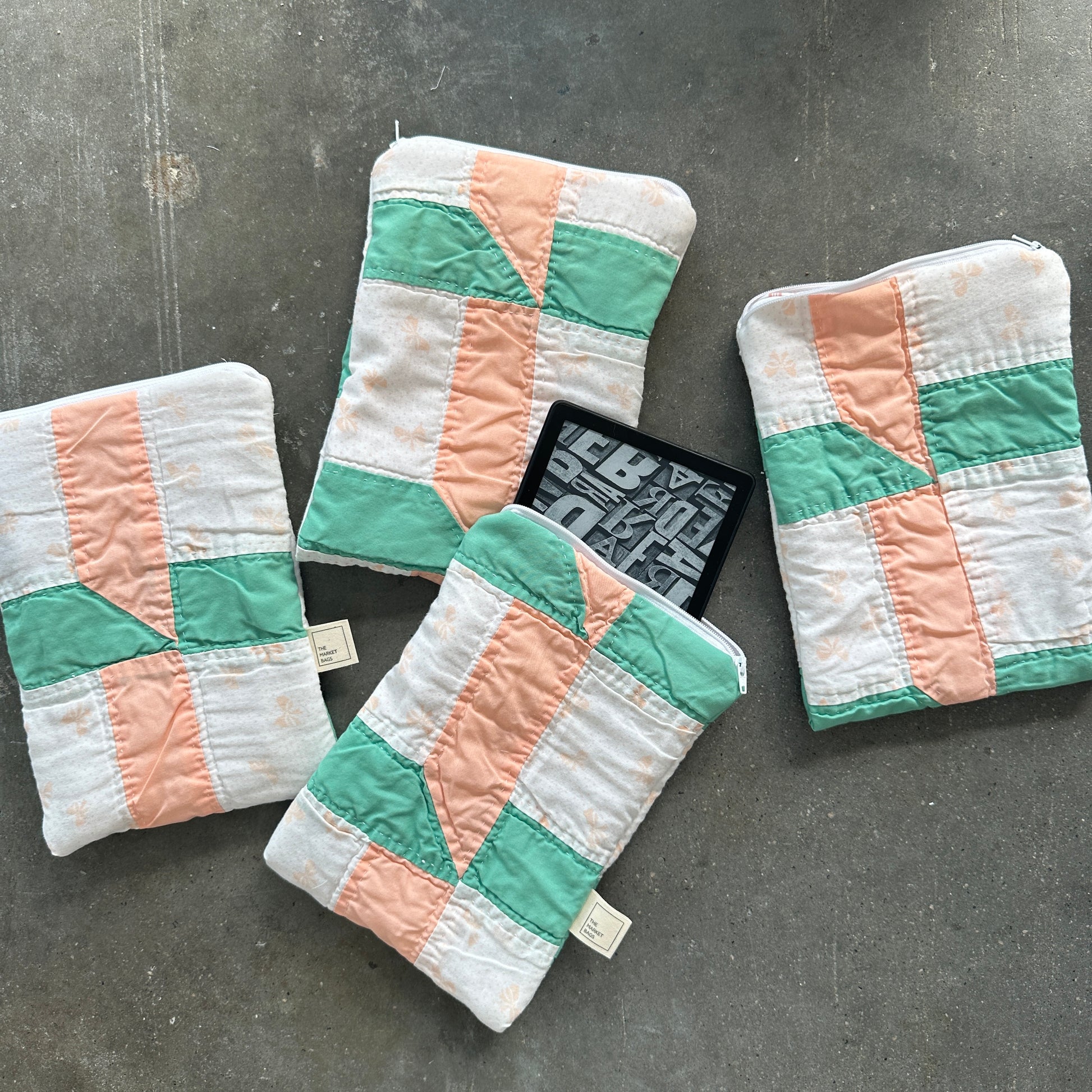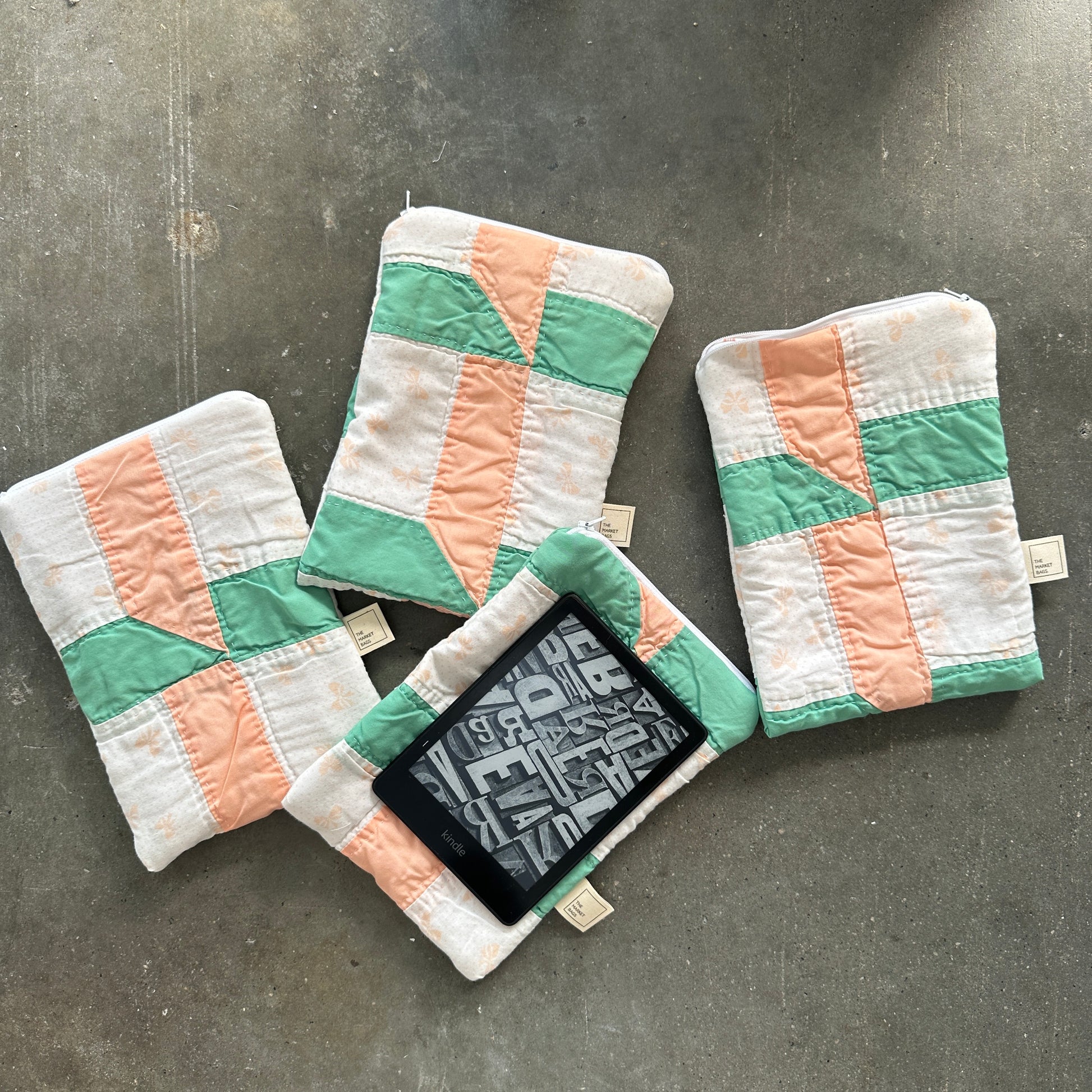 Quilted E-Reader Pouch - Peach & Teal