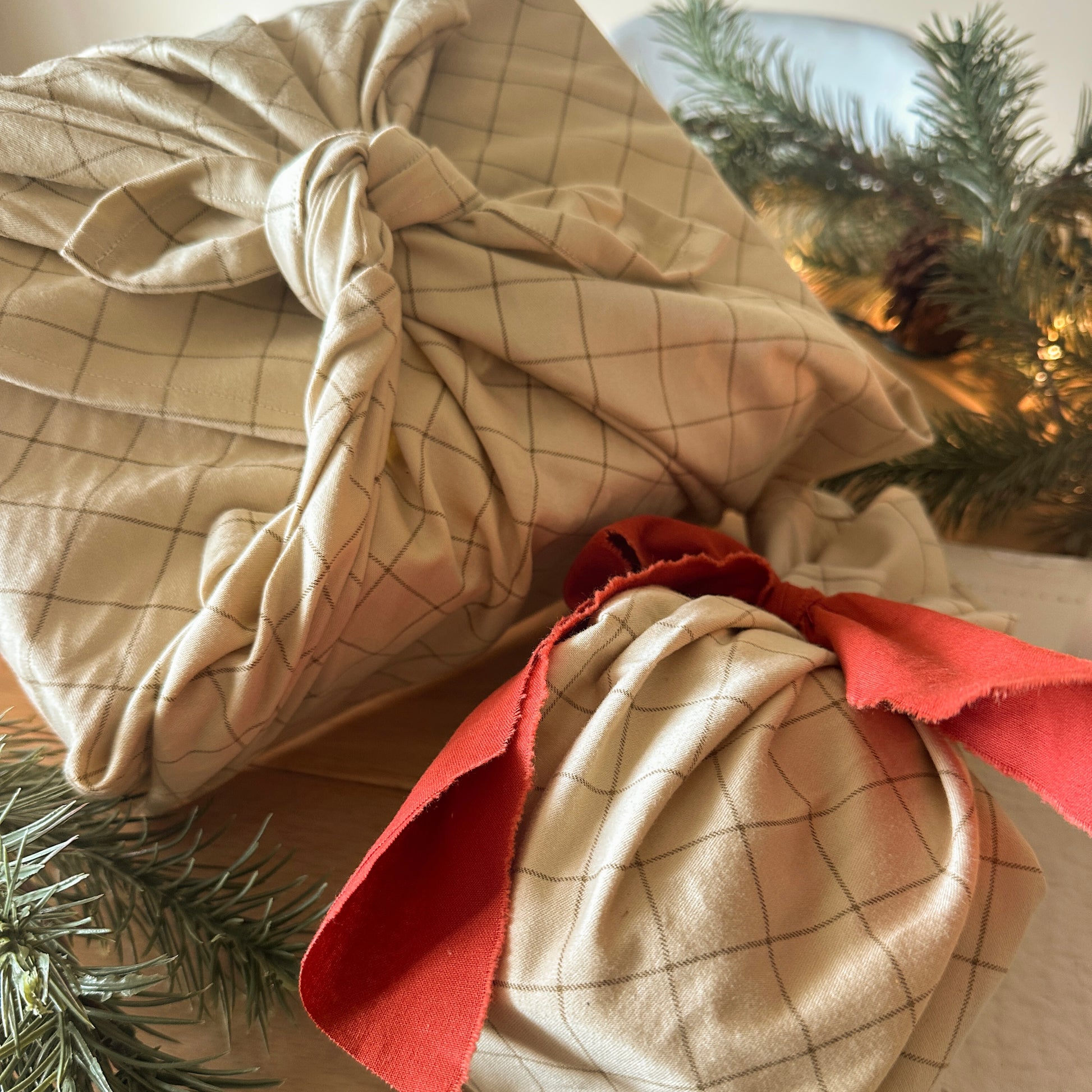 Reusable Gift Wrapping Cloth - Cream Plaid