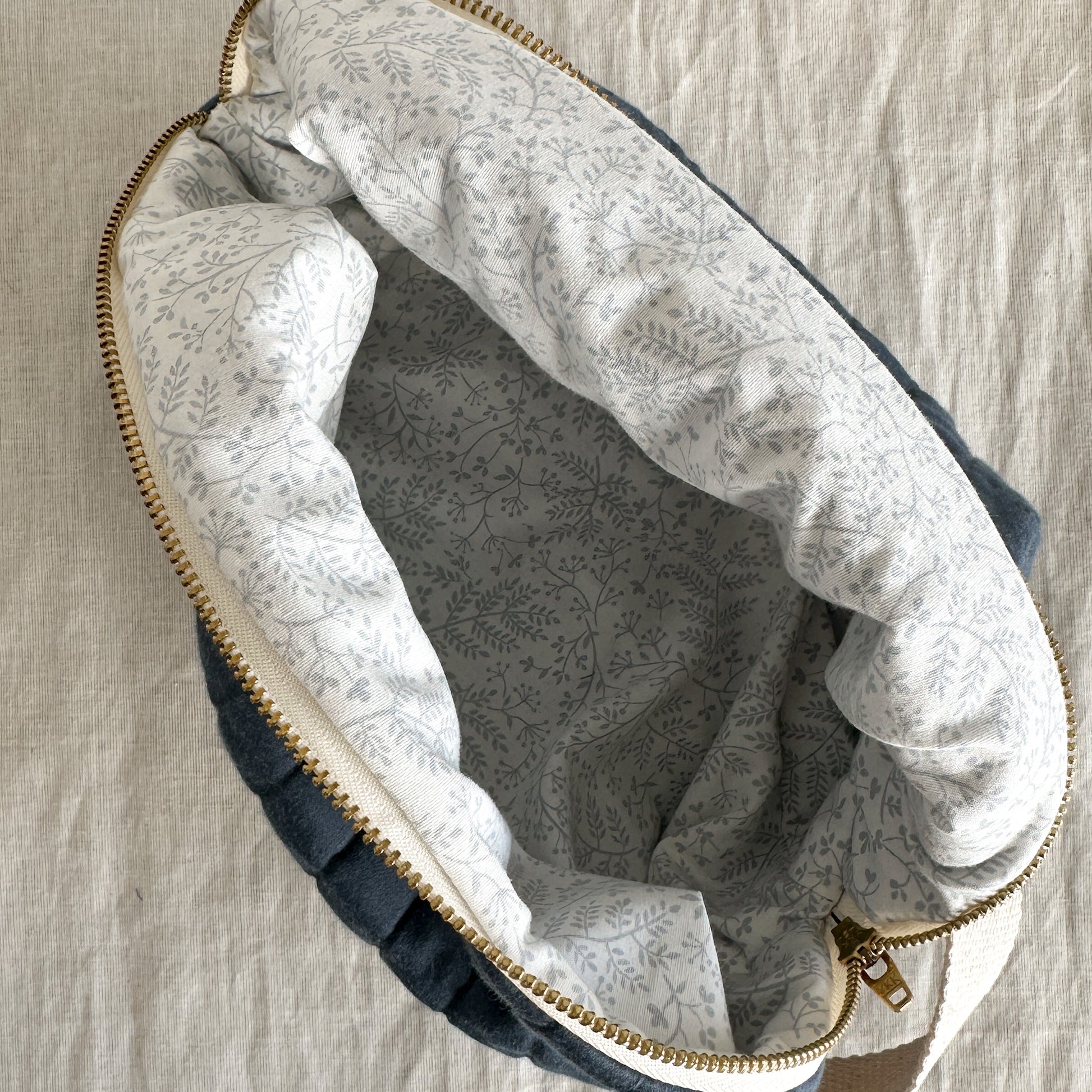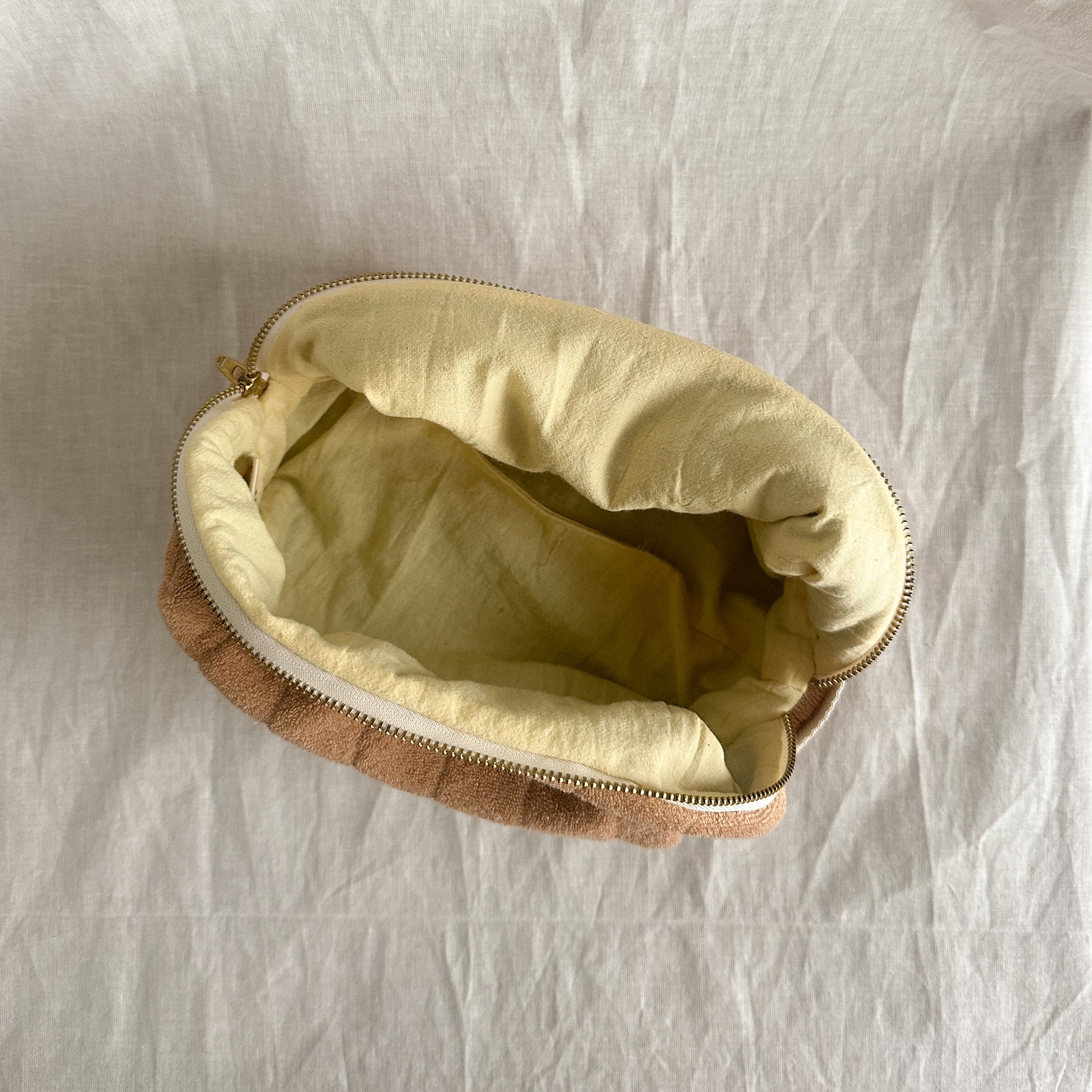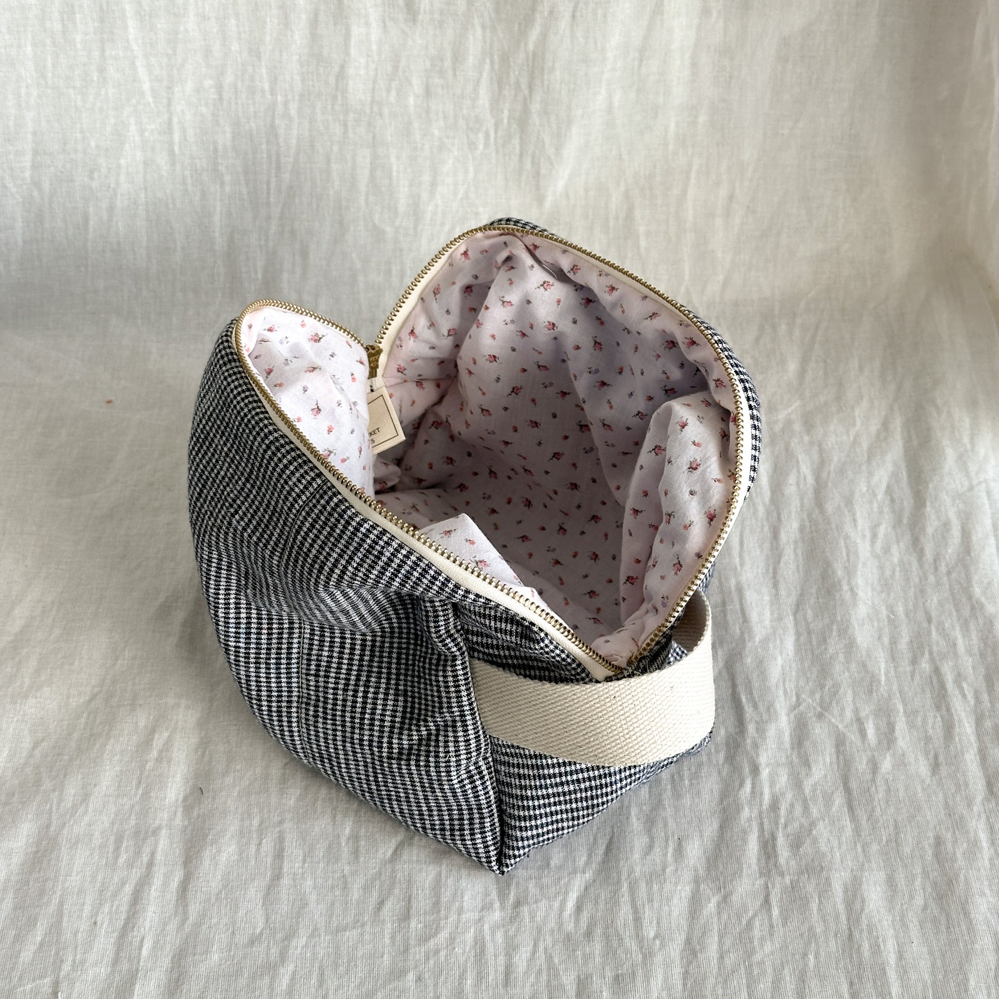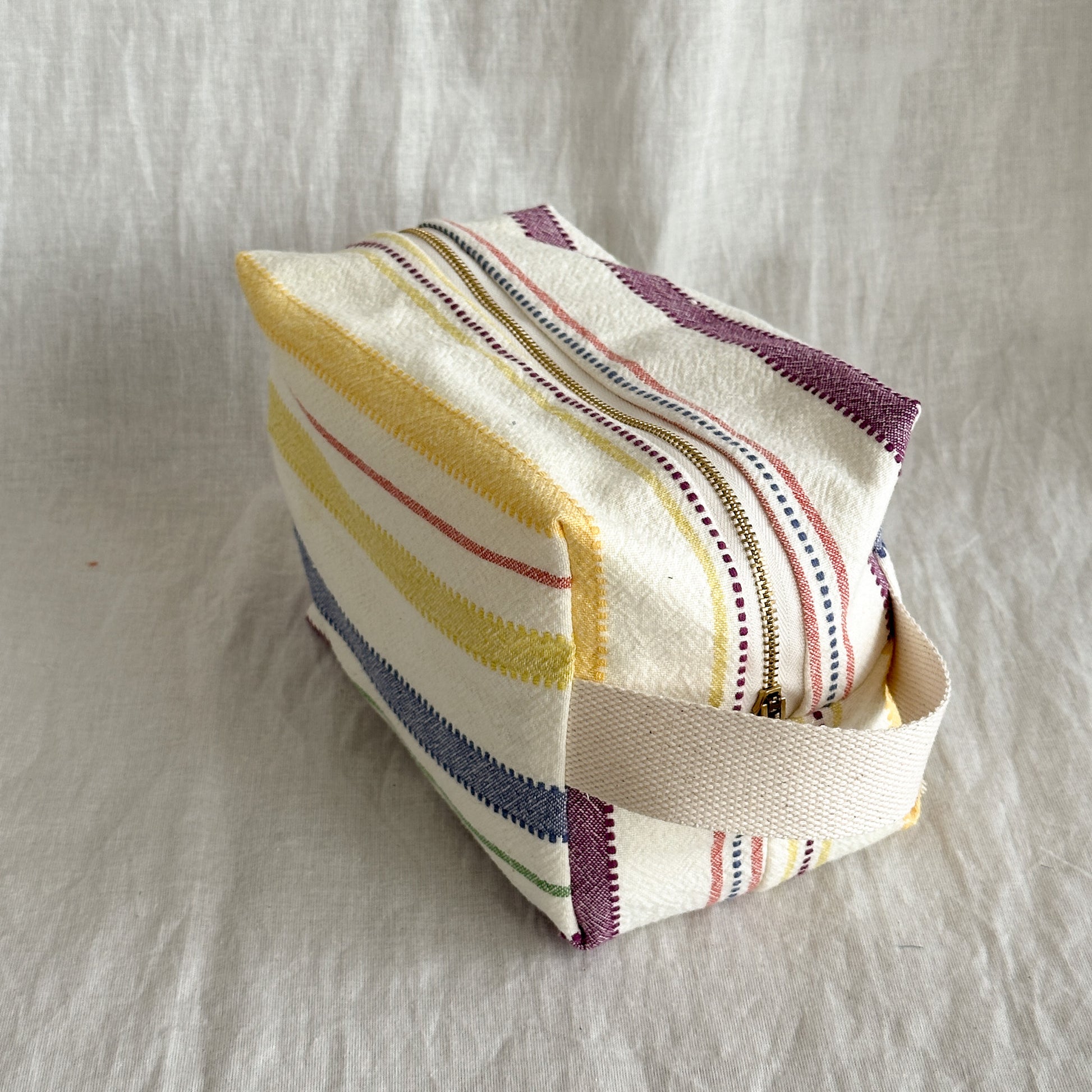 A simple, structured pouch made from thoughtfully chosen upcycled fabrics and sewn in small batches in Kelowna, BC.