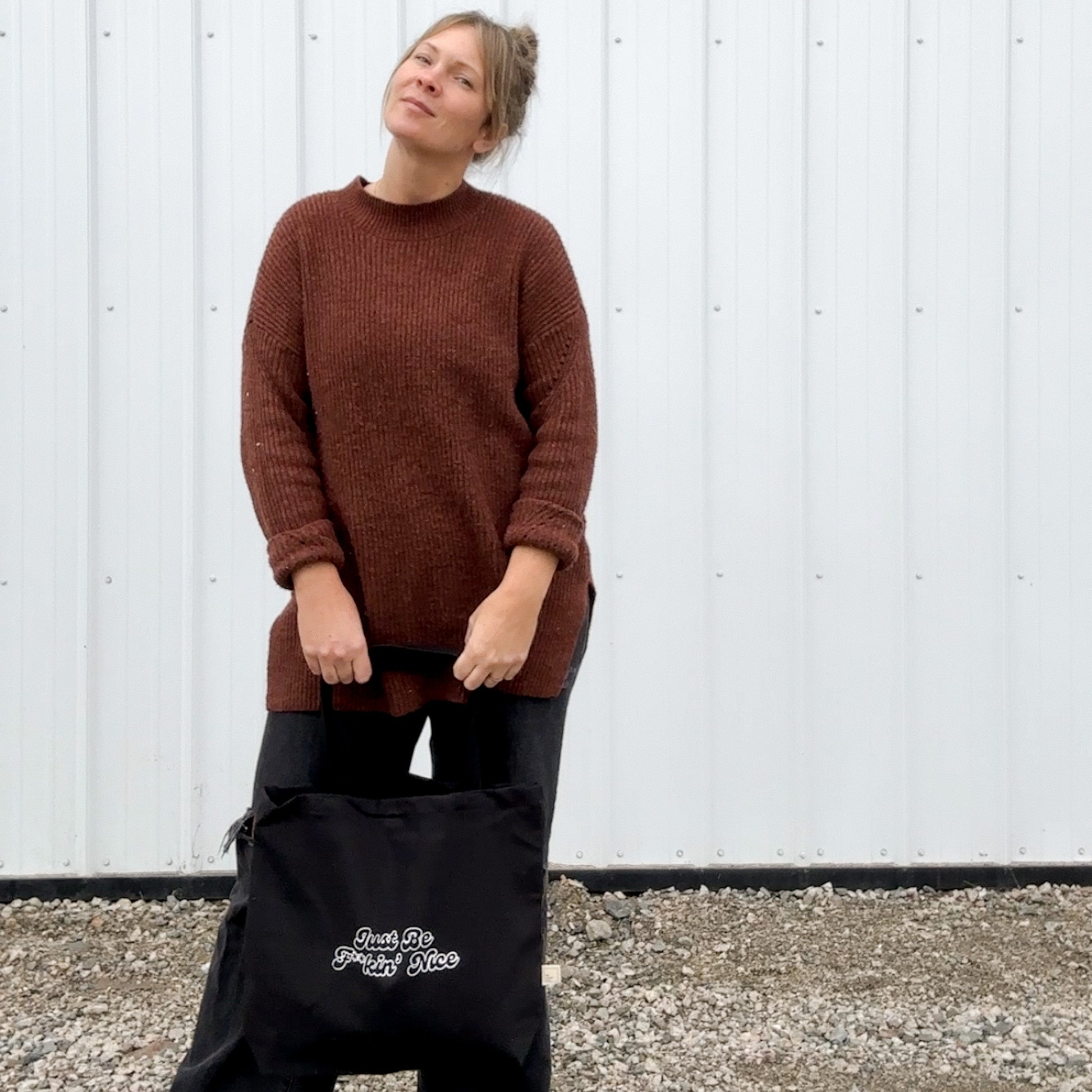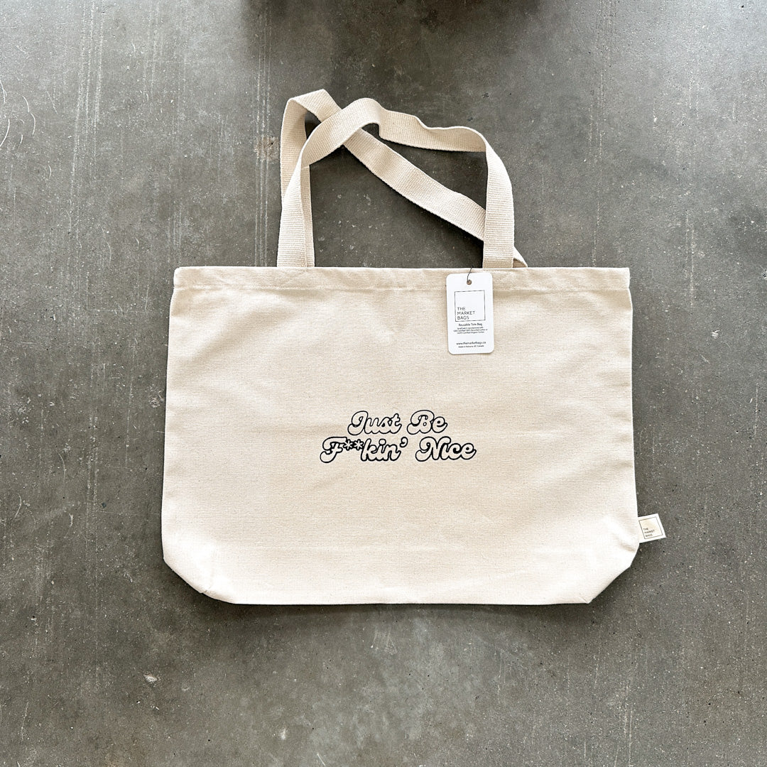 Make a bold statement with our Just Be F**kin' Nice reusable tote bag!